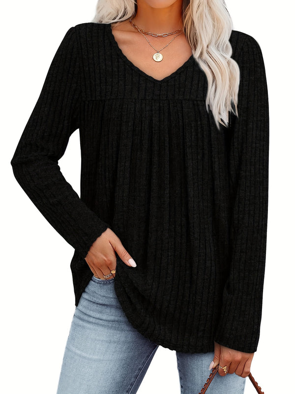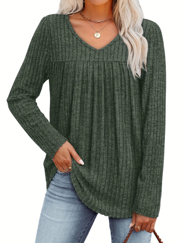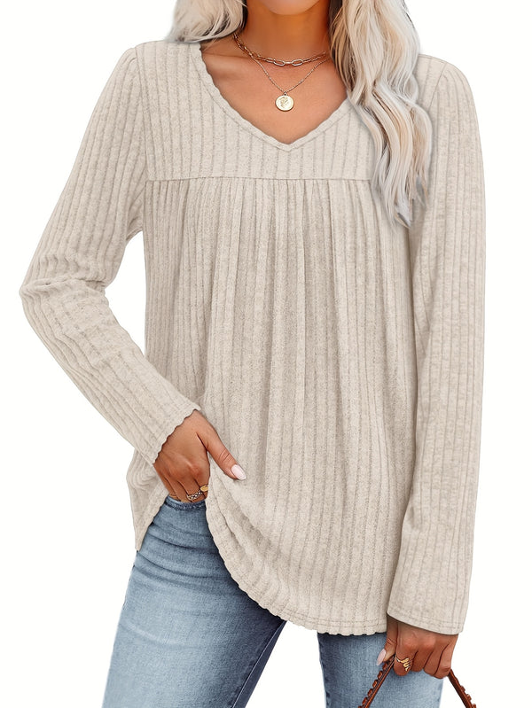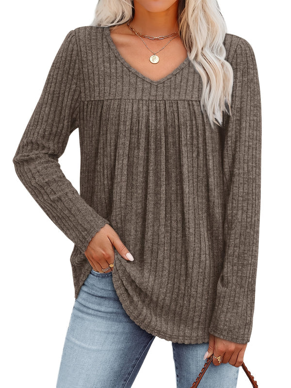 Le col en V apporte une touche élégante et allonge visuellement la silhouette, tandis que le délicat détail froncé à l’avant ajoute du mouvement et du caractère au design. Une pièce polyvalente qui se marie facilement avec un jean casual ou une jupe plus sophistiquée, pour s’adapter naturellement à toutes les occasions.