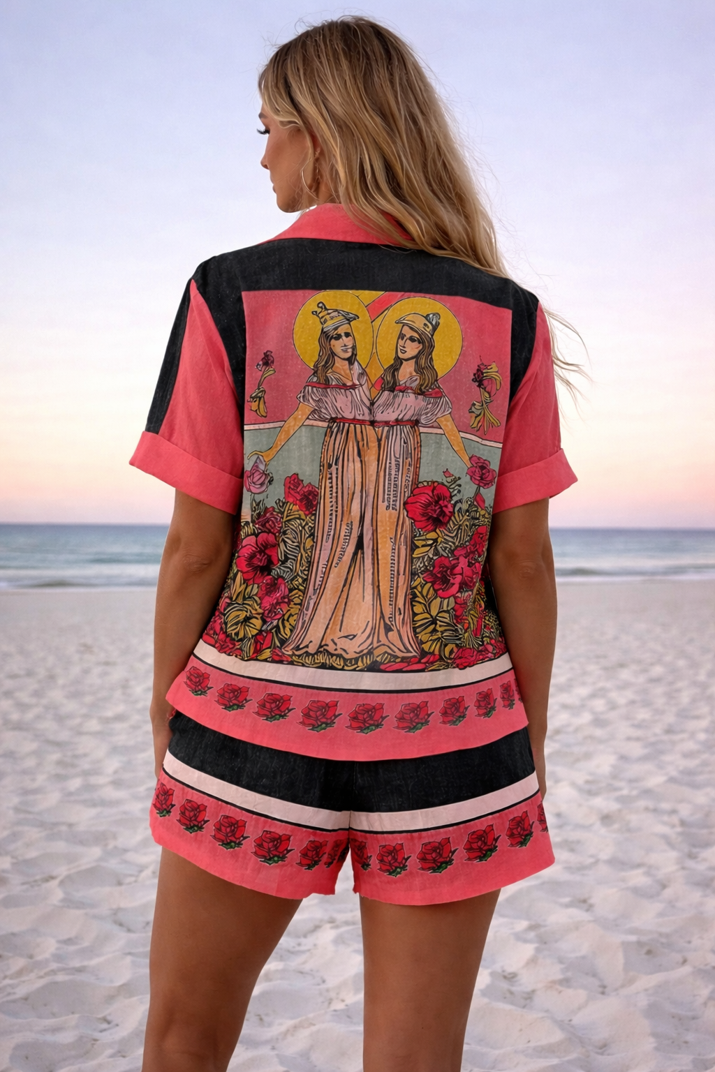 Cet ensemble deux pièces imprimé bohème incarne parfaitement l’élégance estivale et l’originalité. Son design artistique attire le regard, tandis que sa coupe fluide offre un confort optimal tout au long de la journée.