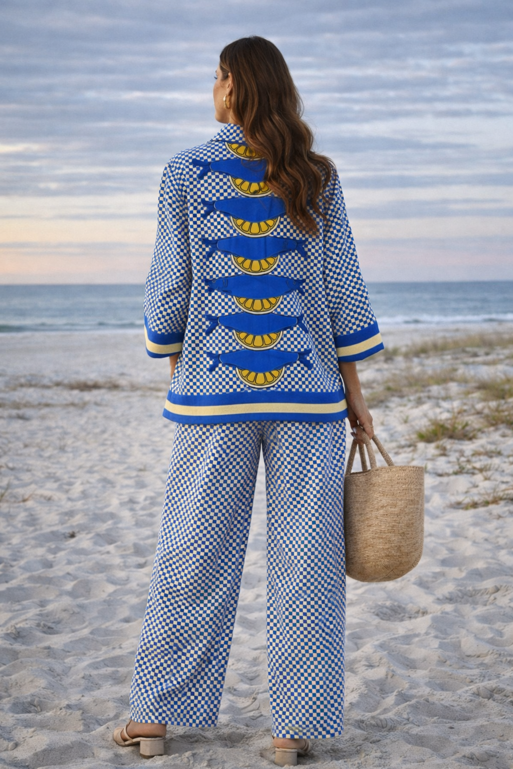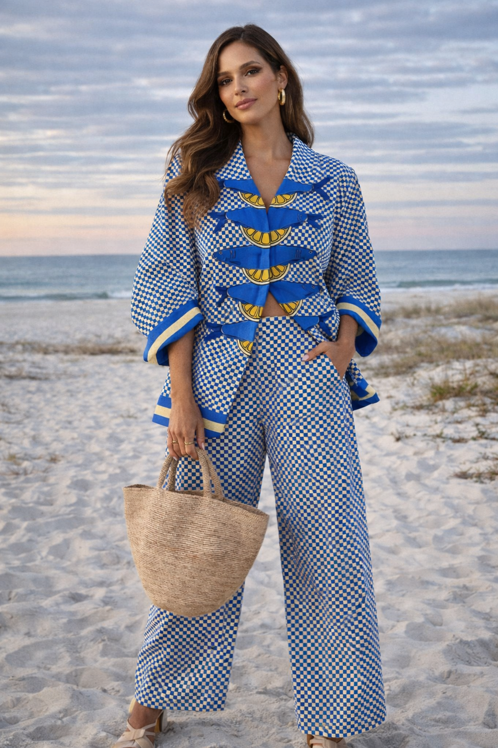 La chemise ample, associée au pantalon assorti, crée un équilibre parfait entre confort et élégance. Porté en ensemble ou séparément, il s’adapte naturellement à vos moments de détente comme à vos escapades estivales.